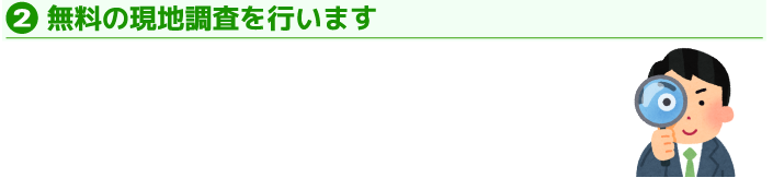 るために、当社のスタッフが無料現地調査を行うという流れとなります。