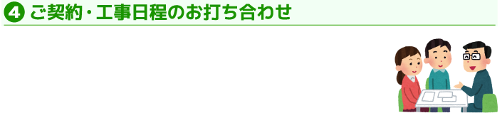 事前にお打ち合わせを行った日時に当社の施工スタッフがお伺い致します。急な天候