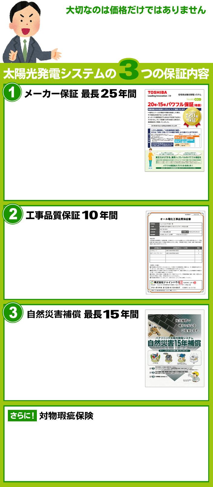 ※メーカーが直接お客様の太陽光発電システムを10年~25年間保証