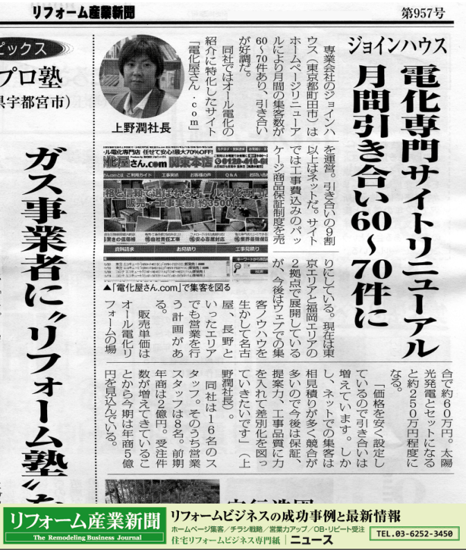 リフォーム産業新聞「ホームページ集客」で当社代表が取材を受けました
