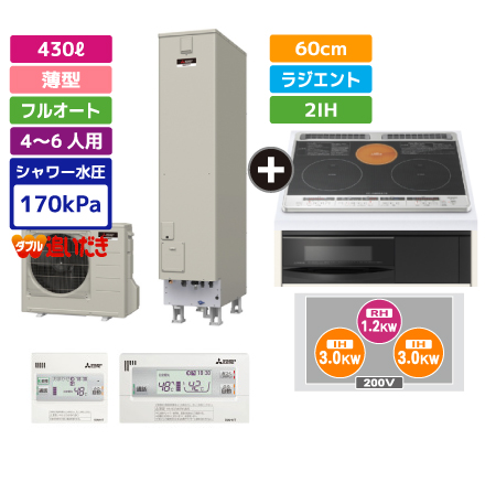 ⑦薄型 430ℓエコキュート+ビルトインIHセット