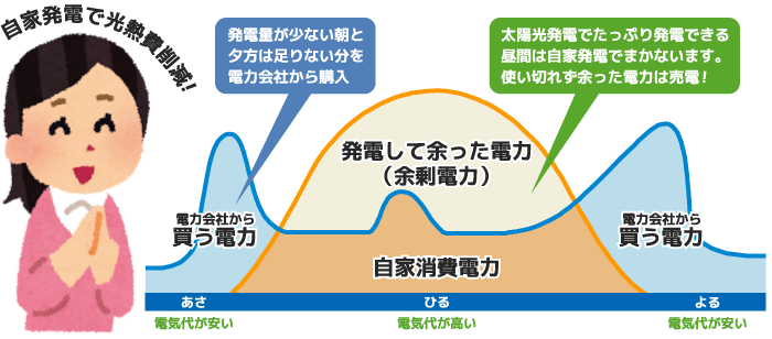 ※夜は発電することができませんので、これまで通り電力会社から電気を購入(買電)します。