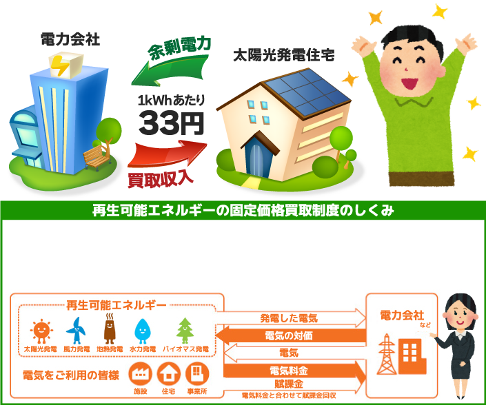 ス等)により発電された電気を、一定期間・固定価格で電力会社等が買取ることを国が義務付けました。